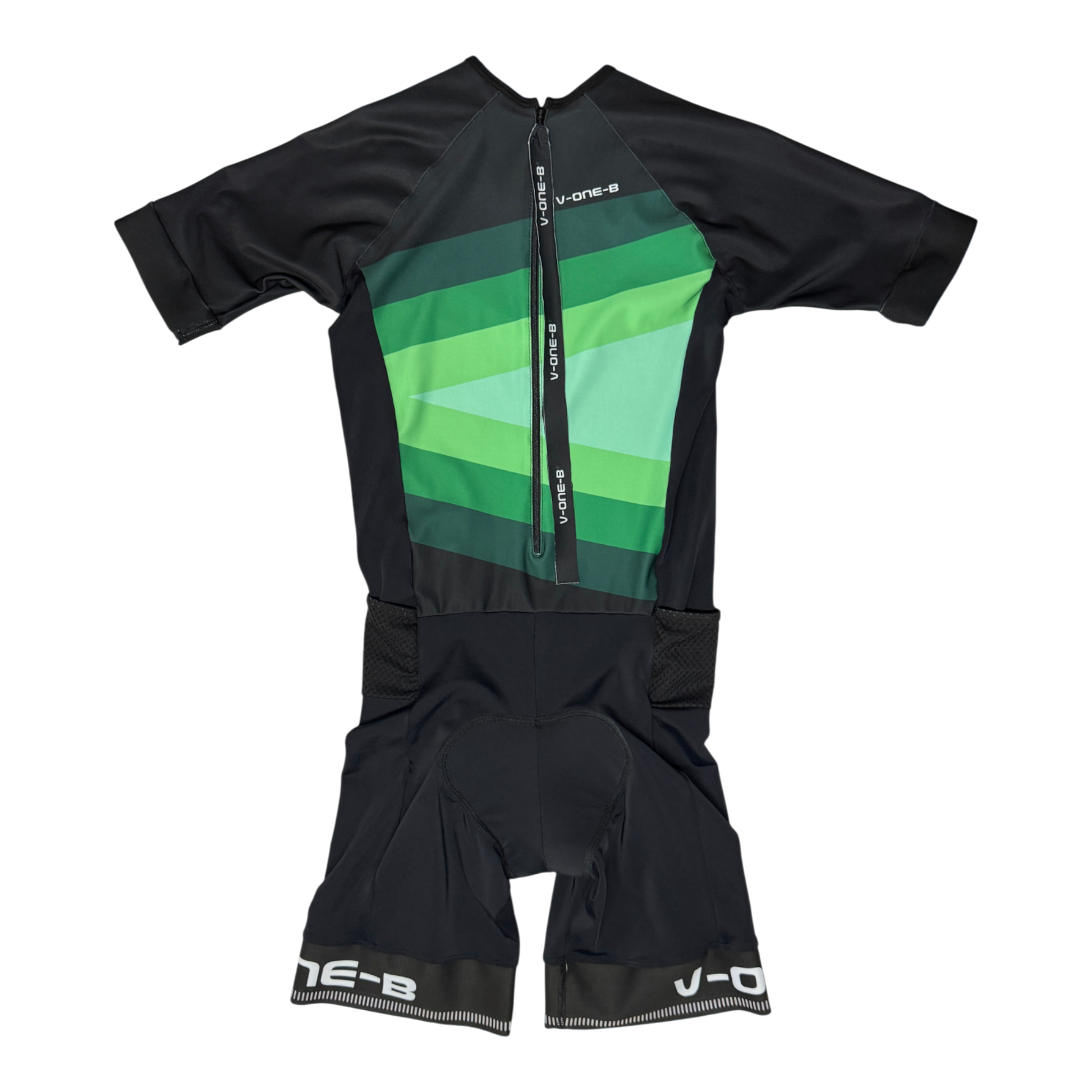 Nuestro enterizo de triatlón está confeccionado en licra de compresión de alta calidad que se ajusta al cuerpo como una segunda piel, brindando máxima libertad de movimiento y secado rápido.