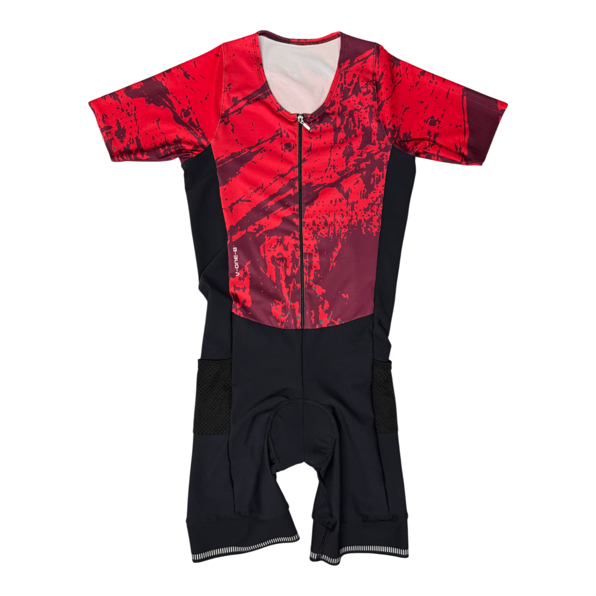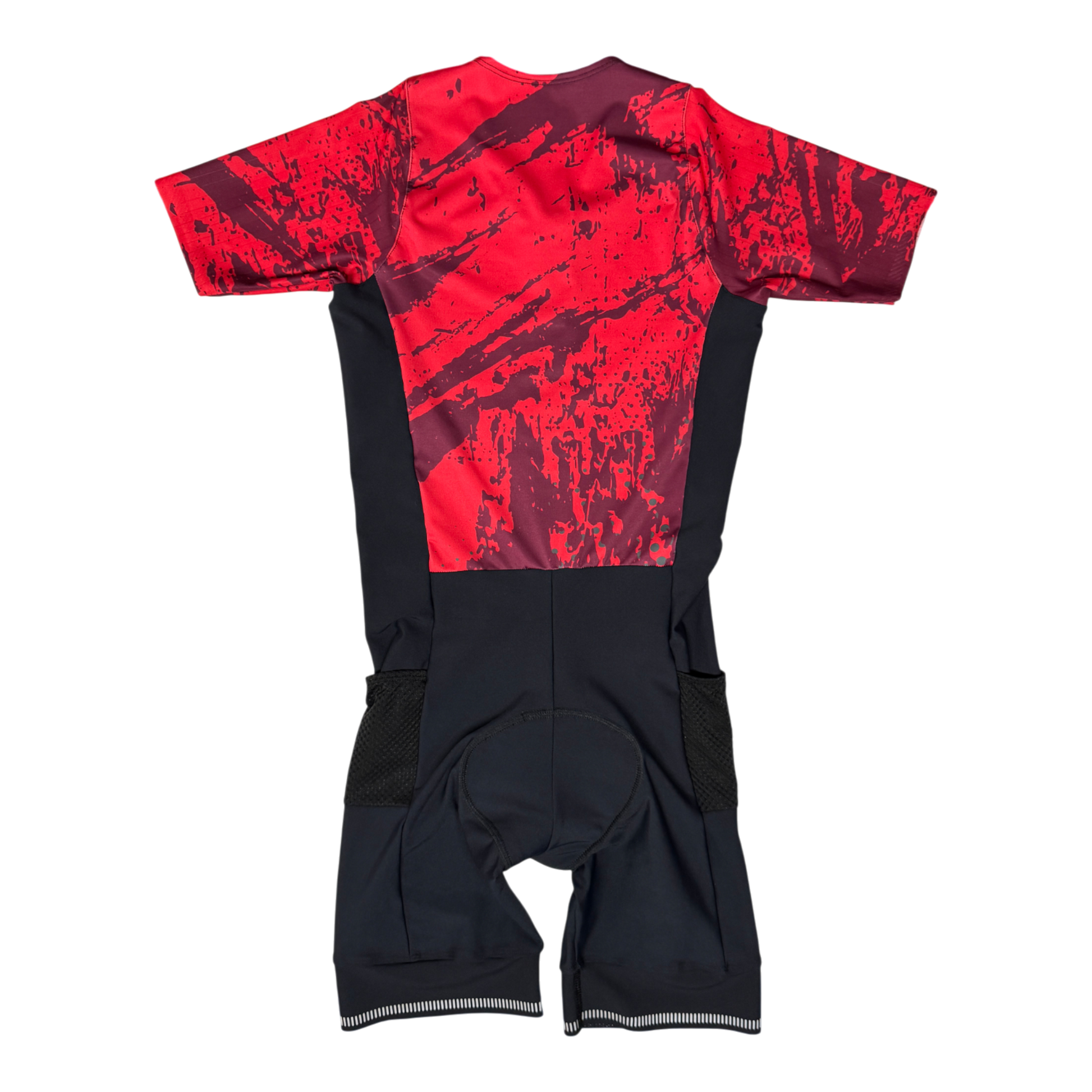 Nuestro enterizo de triatlón está confeccionado en licra de compresión de alta calidad que se ajusta al cuerpo como una segunda piel, brindando máxima libertad de movimiento y secado rápido.