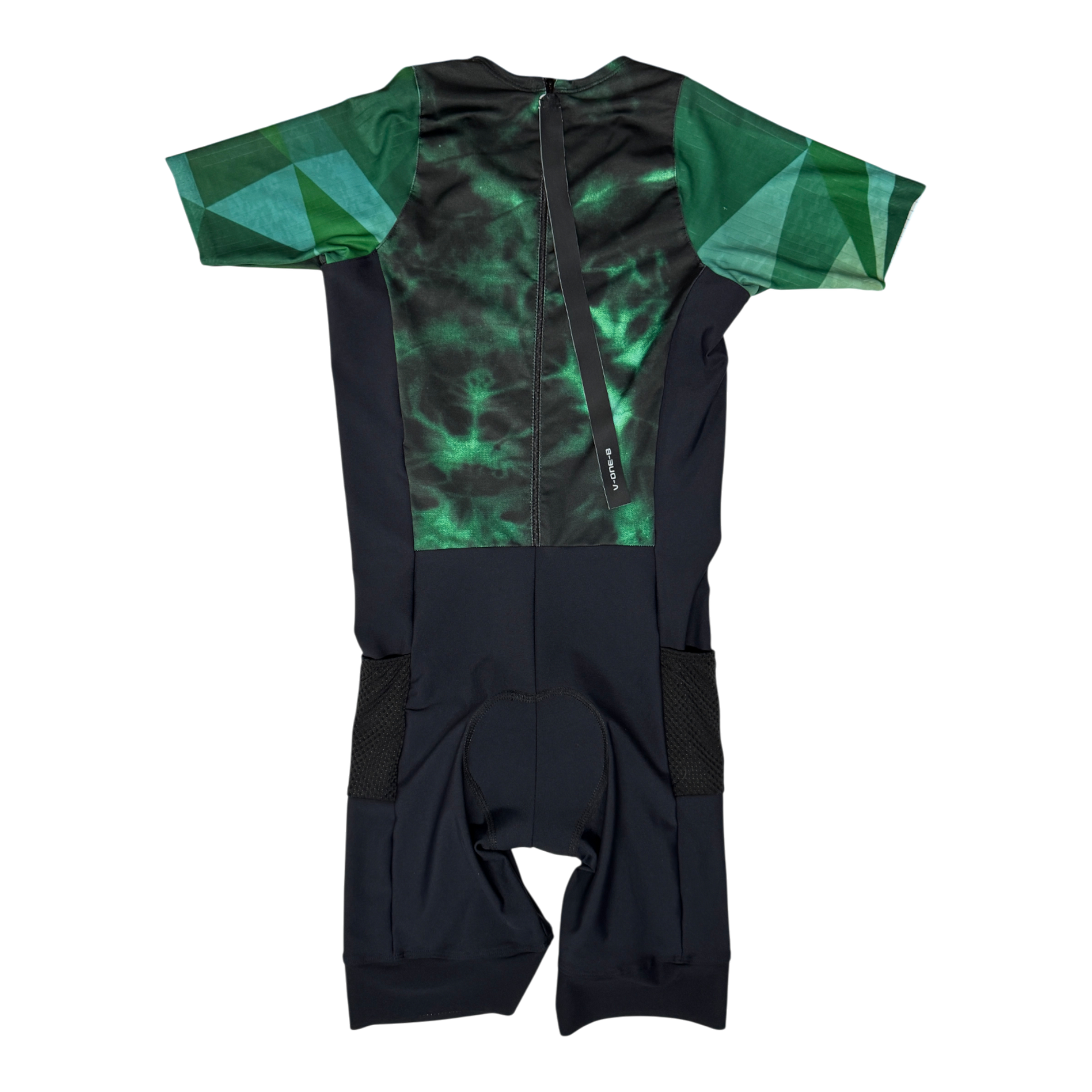 Nuestro enterizo de triatlón está confeccionado en licra de compresión de alta calidad que se ajusta al cuerpo como una segunda piel, brindando máxima libertad de movimiento y secado rápido.