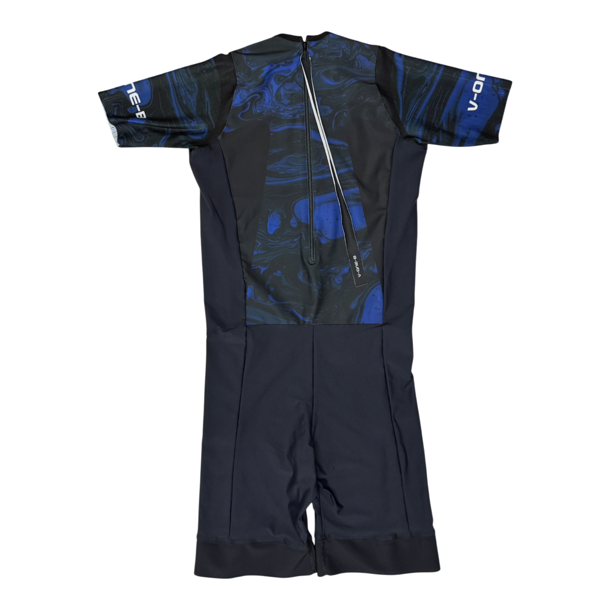 Nuestro enterizo de triatlón está confeccionado en licra de compresión de alta calidad que se ajusta al cuerpo como una segunda piel, brindando máxima libertad de movimiento y secado rápido.