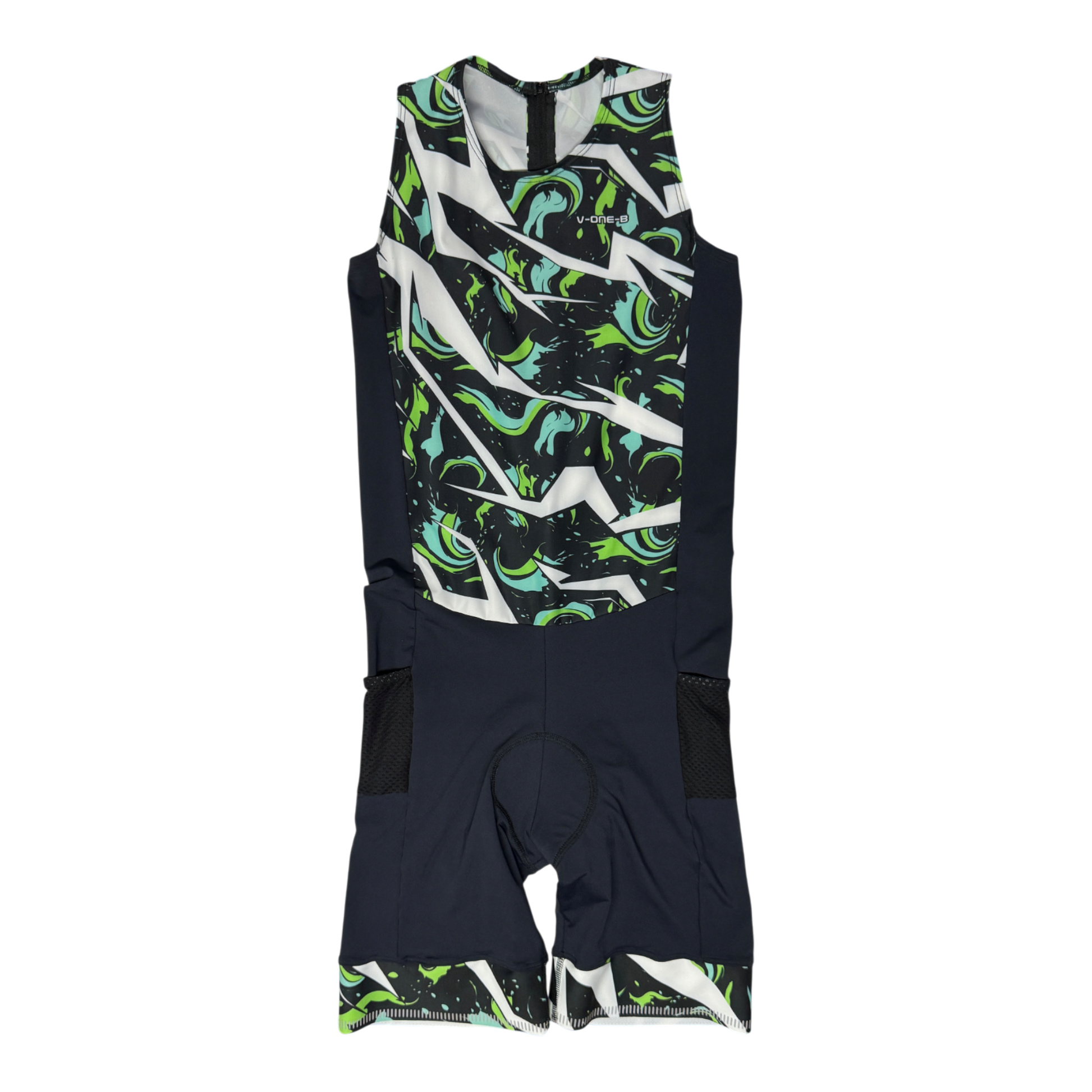 Nuestro enterizo de triatlón está confeccionado en licra de compresión de alta calidad que se ajusta al cuerpo como una segunda piel, brindando máxima libertad de movimiento y secado rápido.